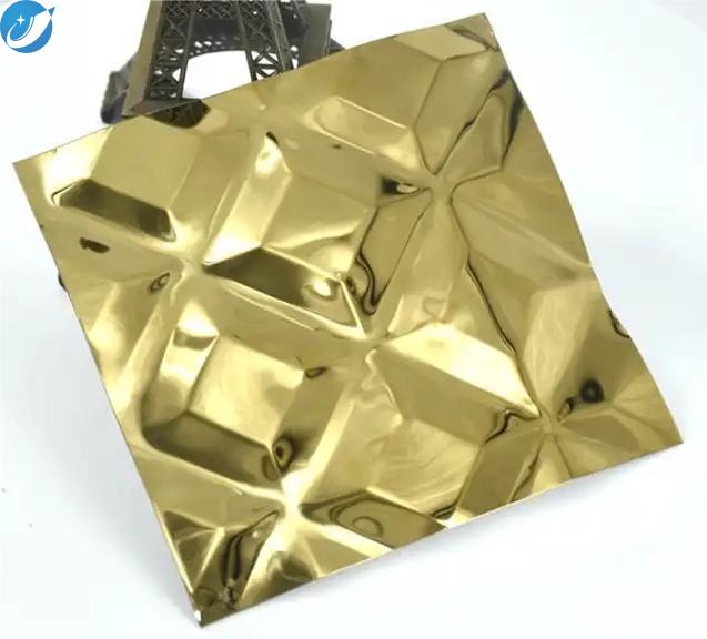 2. Opciones de patrón: la lámina de acero inoxidable en relieve puede presentar una amplia gama de patrones y diseños, según el propósito estético o funcional deseado. Algunos patrones comunes incluyen formas geométricas, texturas, motivos florales o logotipos personalizados. Los patrones pueden estar elevados o empotrados, lo que agrega interés visual y atractivo táctil a la superficie de acero inoxidable.